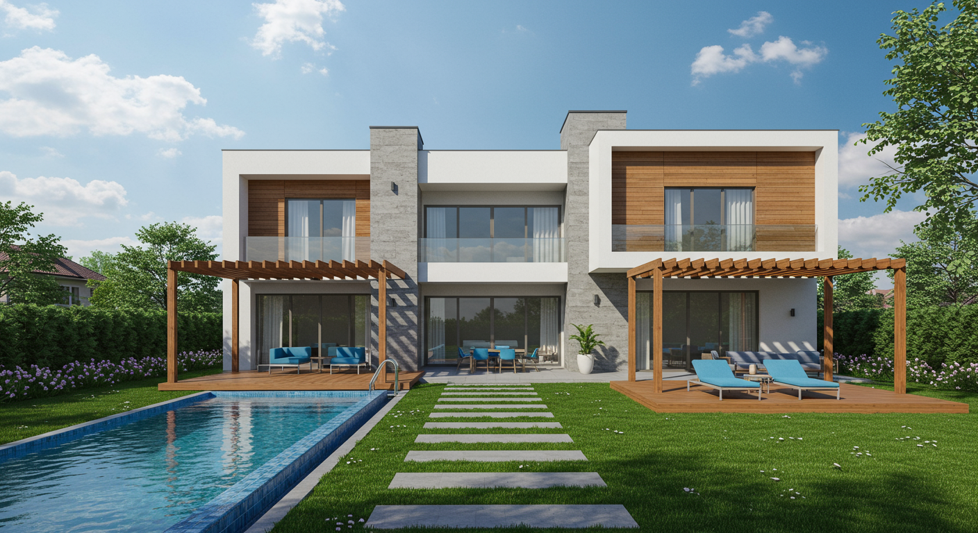 https://www.pexels.com/photo/a-modern-house-with-swimming-pool-under-the-blue-sky-8134750/