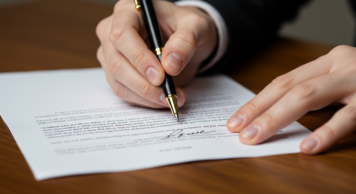https://www.pexels.com/photo/selective-focus-photography-of-person-signing-on-paper-261621/
