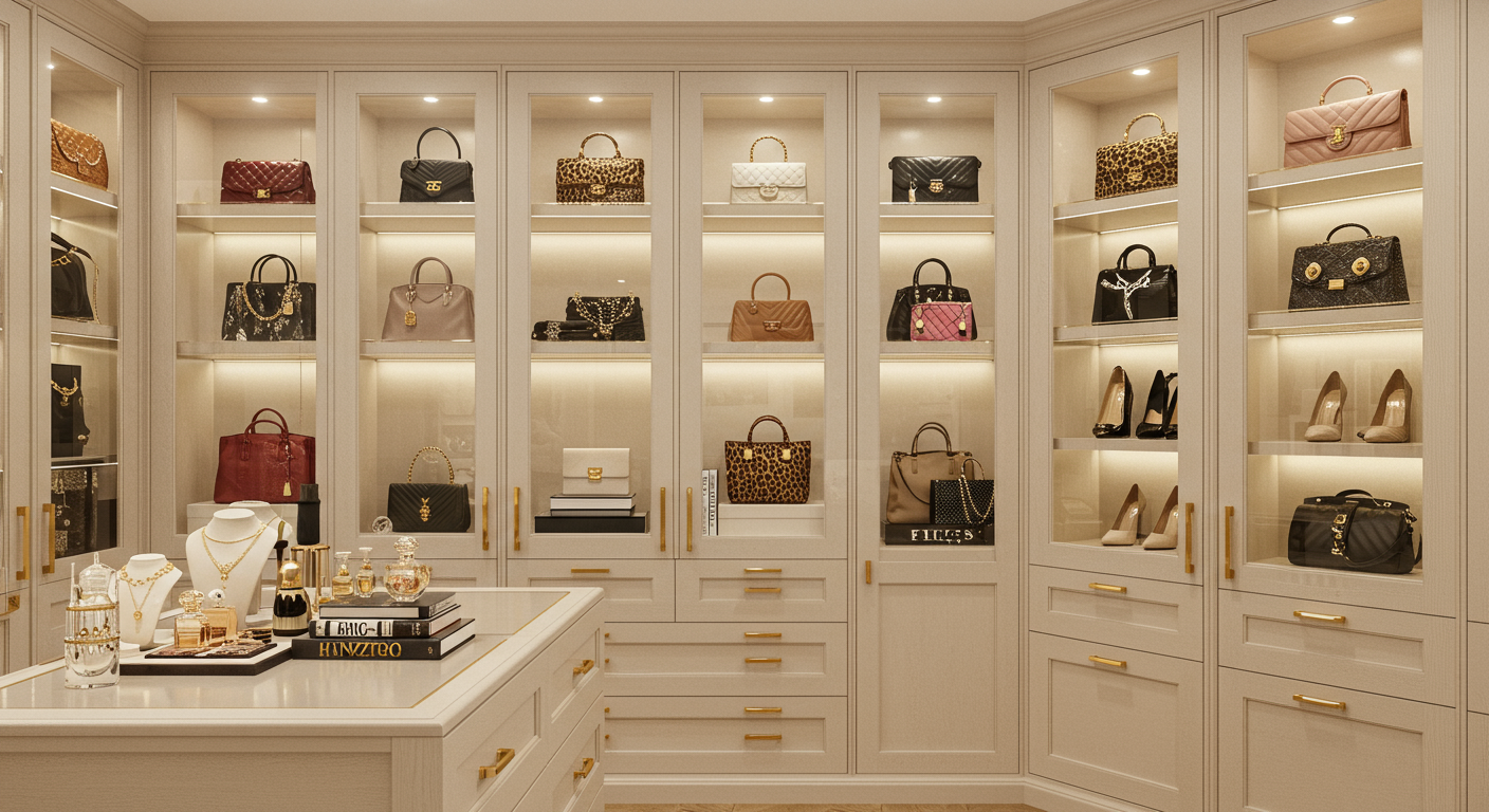 Even in luxury homes, you can play around with new and exciting ways to organize walk-in closets.